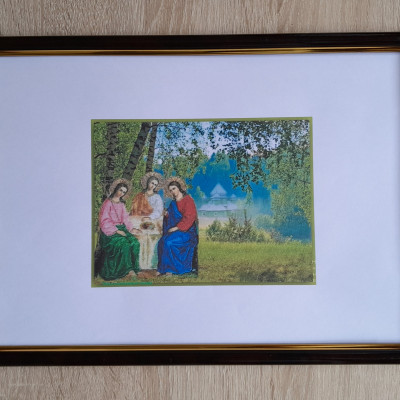 На сюжет, посвящённый празднику Троицы, написано немало картин, первыми среди которых стали иконы.